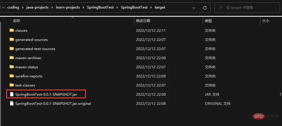 解压SpringBootTest-0.0.1-SNAPSHOT.jar包查看内容