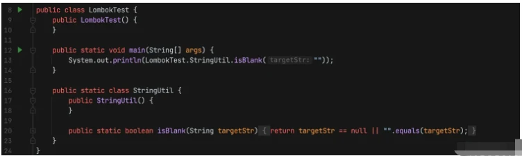 编译后的内容可以看到方法已经从 "".isBlank() 转换为 LombokTest.StringUtil.isBlank(""),Lombok也正是通过这种方式提供给我们扩展方法的语法糖,真的好甜。