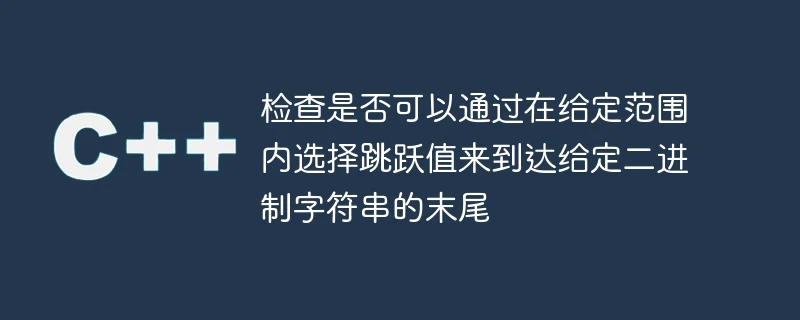 二进制字符串是只包含0和1两种不同类型字符的字符串。给定一个二进制字符串和两个整数L和R。我们可以从字符串值为'0'的索引处进行大小在'L'和'R'之间的跳跃,包括'L'和'R'。我们必须从第零个索引开始,找出是否能够到达最后一个索引。