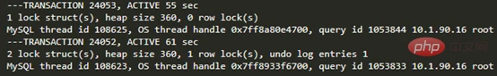 show engine innodb status查看锁相关的部分: