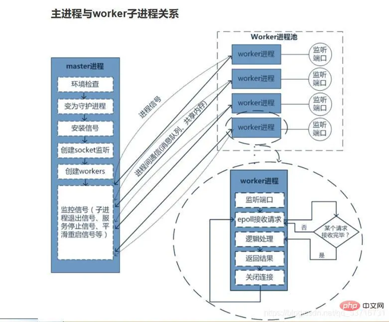 static::monitorWorkers(); //主进程监控各个worker的状态