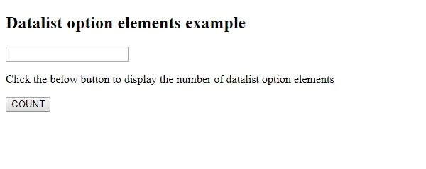 <p>Click the below button to display the number of datalist option elements</p>