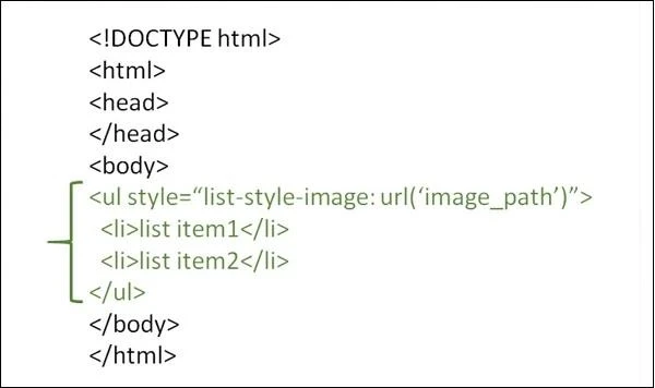 <ul style="list-style-image: url(image.png)"> <li>Item in list…</li> <li>Item in list…</li> <li>Item in list…</li> </ul>